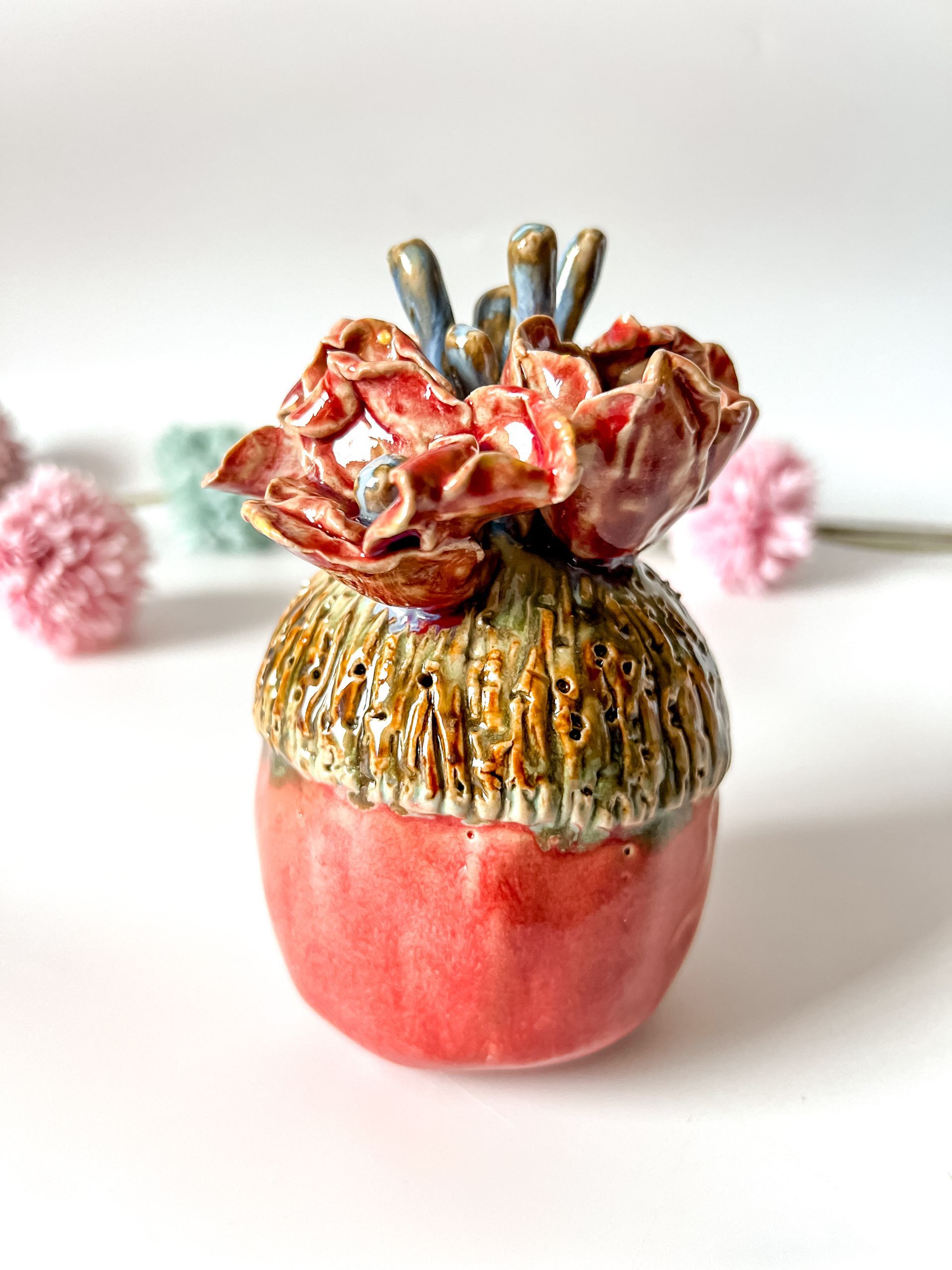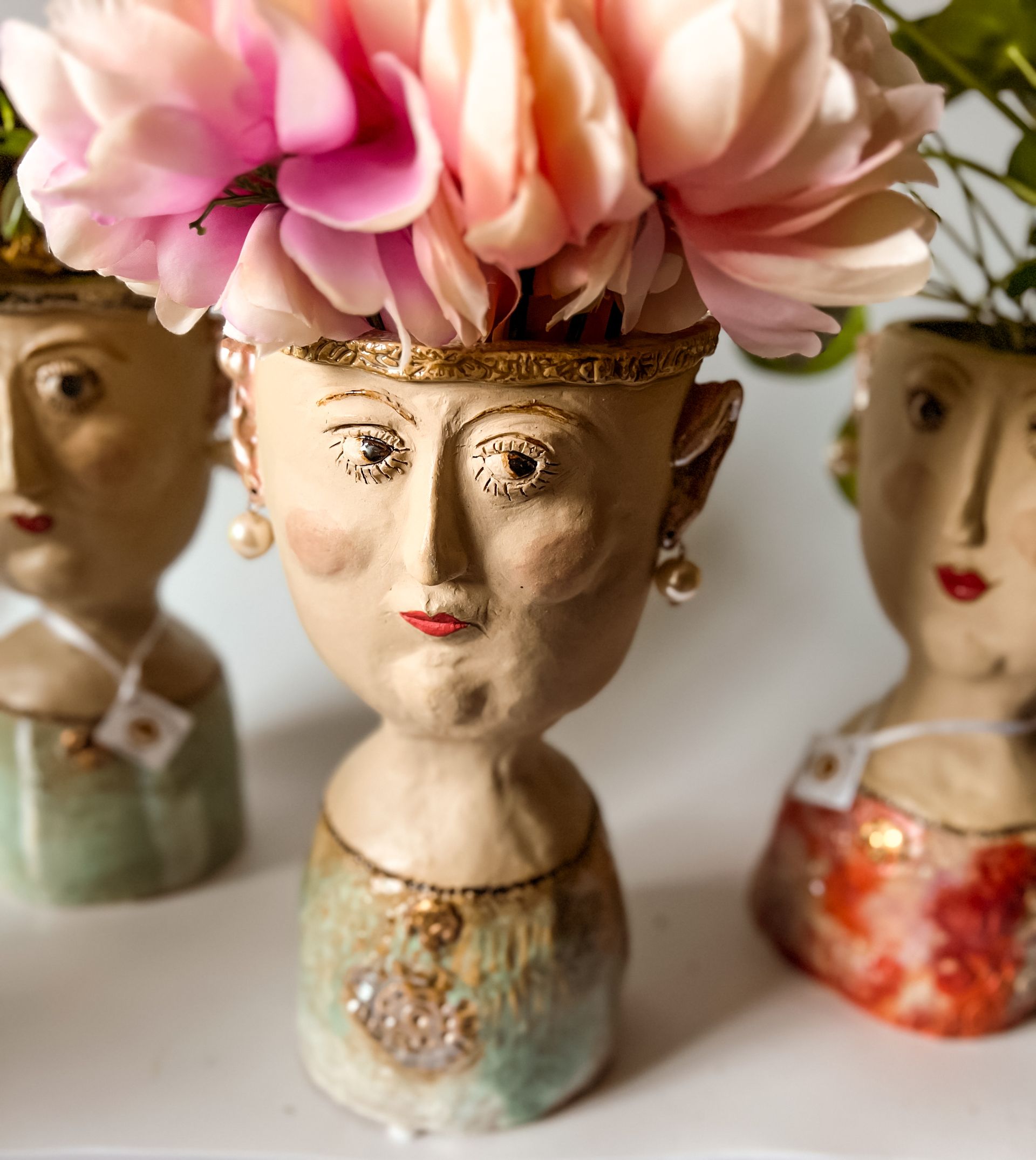 Die Abkühlphase dauert wegen der hohen Temperatur etwas länger und ich muss sagen, es ist jedes Mal eine unglaubliche Vorfreude und Überraschung den Hochbrandofen zu öffnen, denn jeder Farbverlauf fällt anders aus. Manche Gesichtszüge der Figuren wurden durch die Bearbeitung mit Oxiden wirkungsvoll hervorgehoben und einige Figuren bekommen im Anschluss an die zweite Glasur eine nochmalige Glasur mit Lüster oder Gold. Diese Figuren müssen dreimal gebrannt werden. Durch den wunderschönen Lüsterglanz entstehen ganz einzigartige Objekte.